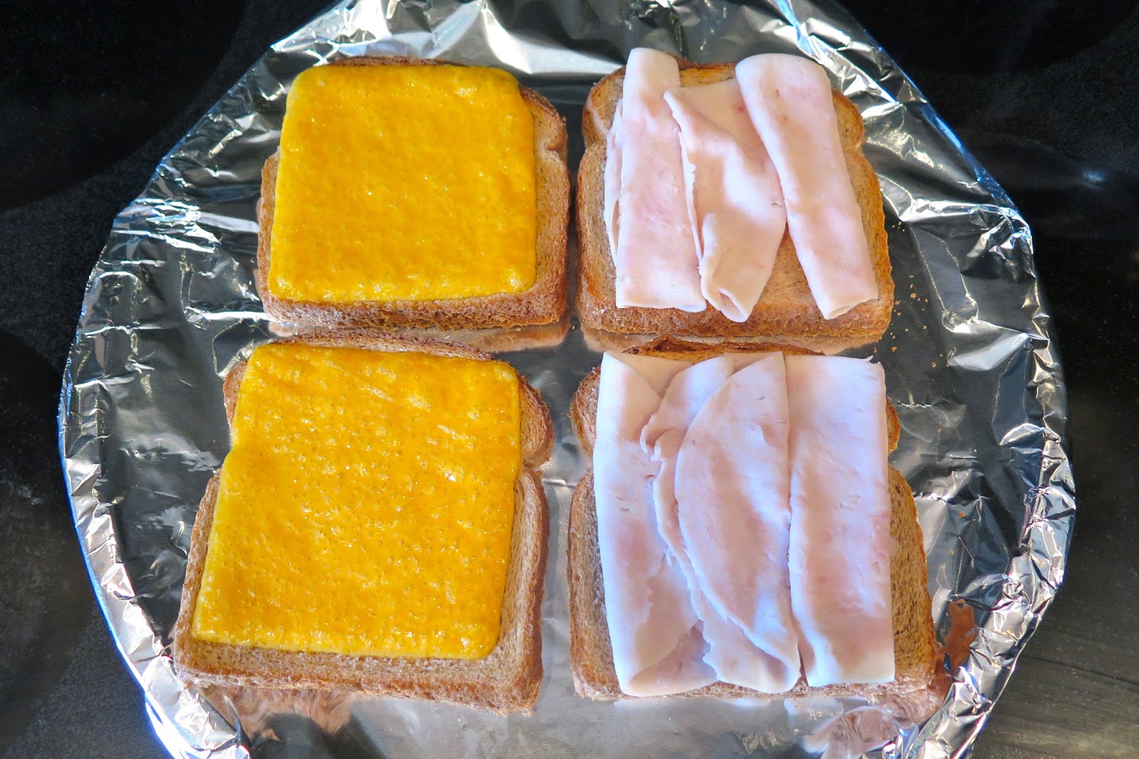 Cover a pan with foil and lay out your bread cheese and meat